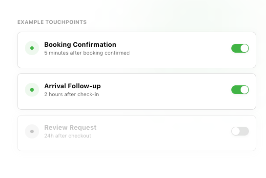 - Natural language programming: Set up automation by simply describing what you want: "Check in on guests mid-stay if they're staying more than 3 days"